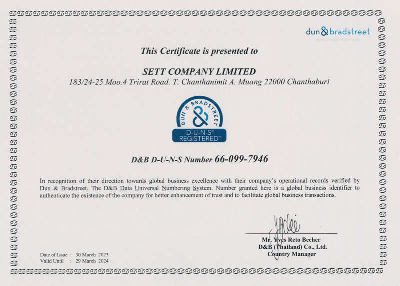 我们已在世界领先的商业登记平台DUNS注册。我们所有的商业信息都可以在DUNS数据库中查证。